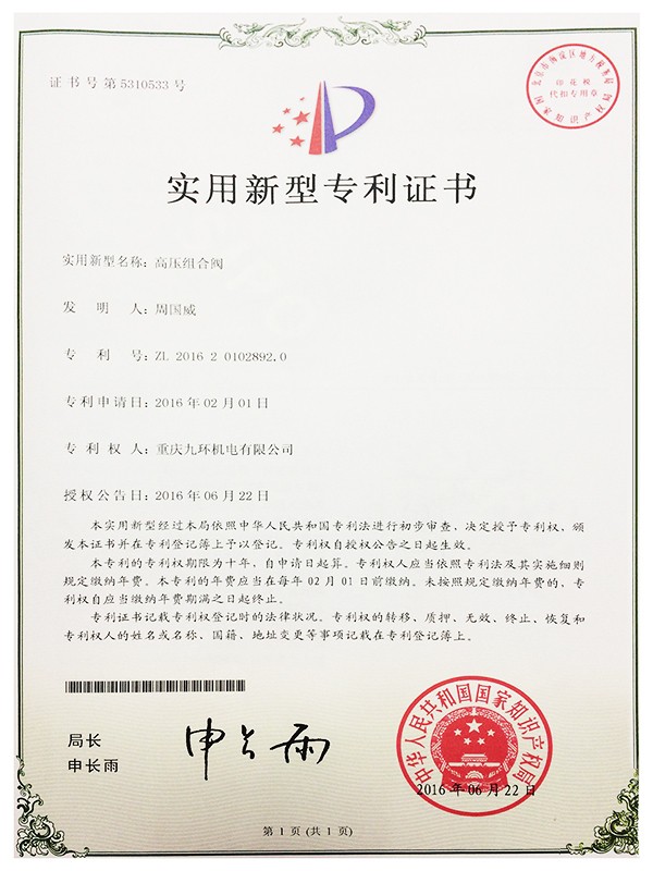 九環(huán)機(jī)電-氫能閥組核心專利